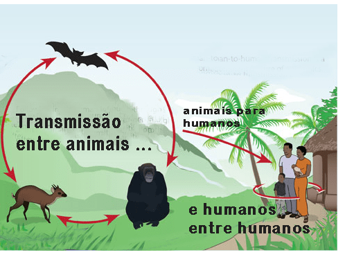 O surgimento e propagação de diversas doenças como é o caso da doença provocada pelo vírus Ebola pode ser atribuído ao desequilíbrio da relação do homem, com os animais e o meio ambiente. É uma doença grave, fatal e altamente contagiosa causada ocorrendo esporadicamente em países da África. O reservatório natural do vírus permanece desconhecido. Com base em evidências, pesquisadores acreditam que o vírus pode ser veiculado por animais oriundos da África e que morcegos possam ser o mais provável reservatório do vírus. As mudanças climáticas e o uso indevido da terra, como os desmatamentos geram interrupções nas condições ambientais e habitats fornecendo novas oportunidades para doenças passarem para os animais e destes para o home.
